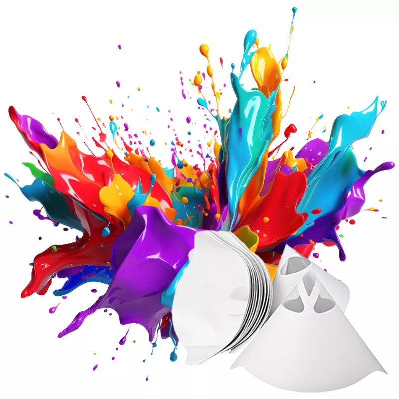 -Паперові ситечки з фільтром 190 мкм, підходячи для фільтрації фарби на масляній основі ;